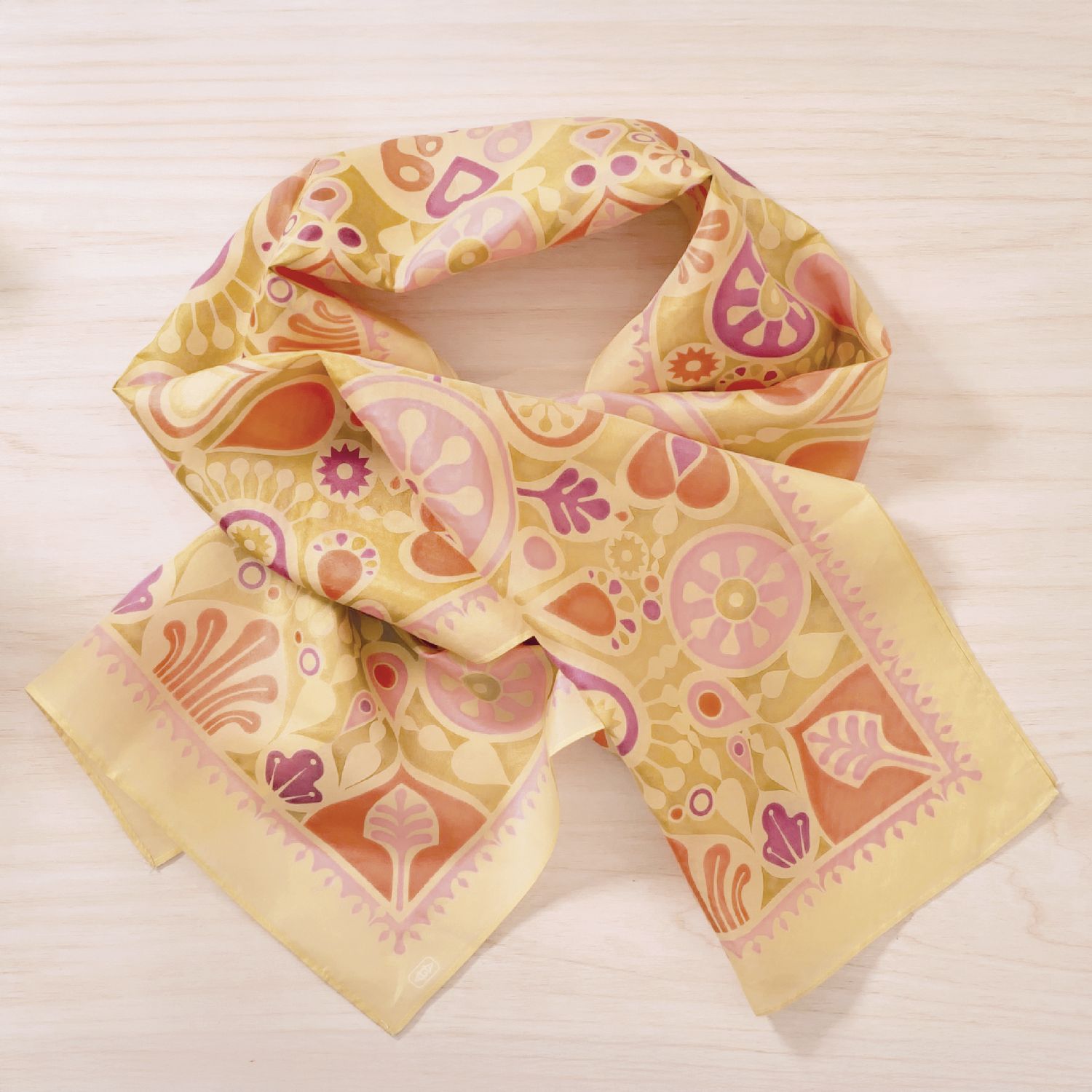 Vous réaliserez un long foulard en soie, une création unique à porter fièrement ou à offrir en cadeau.