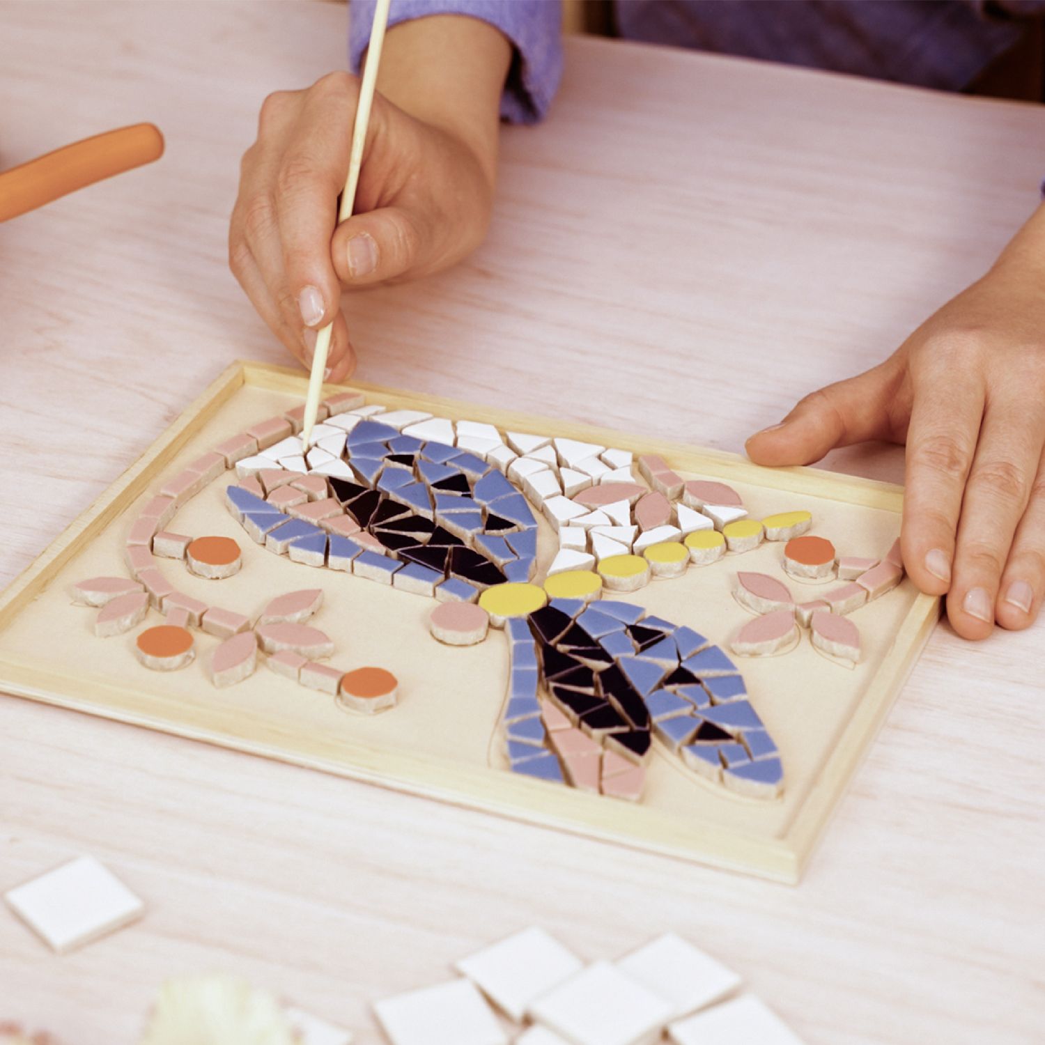 Grâce à une pince de mosaïste, vous apprendrez à casser et assembler de petites tesselles en céramique pour voir votre motif prendre forme sur une plaque de bois imprimée. Colle, ciment, outils professionnels : tout est fourni pour vous accompagner dans cette expérience créative.